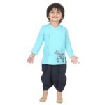 BownBee Ethnic Wear Cotton Kurta Dhoti Set for Boys, Front Open Horse Embroidered With Full Sleeves