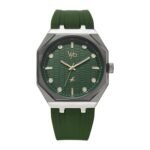 The Fastrack Vyb Rebel combines durable design with contemporary style, making it a standout accessory for those who appreciate bold aesthetics. The Textured Green dial is complemented by Gold markers and hands, creating a striking contrast that exudes confidence and sophistication. The robust silver shaped case and Green silicon strap enhance its commanding presence, making it an excellent match for both casual and adventurous occasions. Ideal for those seeking a statement piece that blends minimalism with impact. Case Dimension :43 X 47.5 X 12 | Metal Strap| Stainless steel back cover | 6 months limited warranty on manufacturing defects and plating