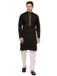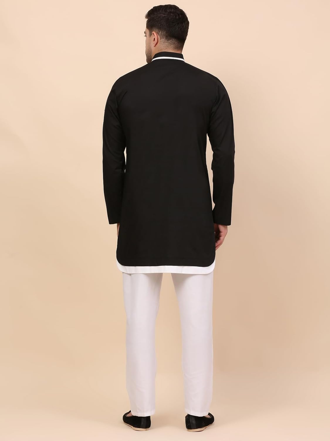 The QISHTAR Black Solid Cotton Kurta is a statement piece for men who value understated elegance and versatility. Made from high-quality pure cotton, this knee-length kurta combines comfort and style effortlessly. Its deep black color and clean, minimalist design make it ideal for a variety of occasions—from casual gatherings to formal events. This kurta includes practical features like a Mandarin neck, half-button closure, and two side pockets, making it a blend of traditional design with functional elements for the modern man.