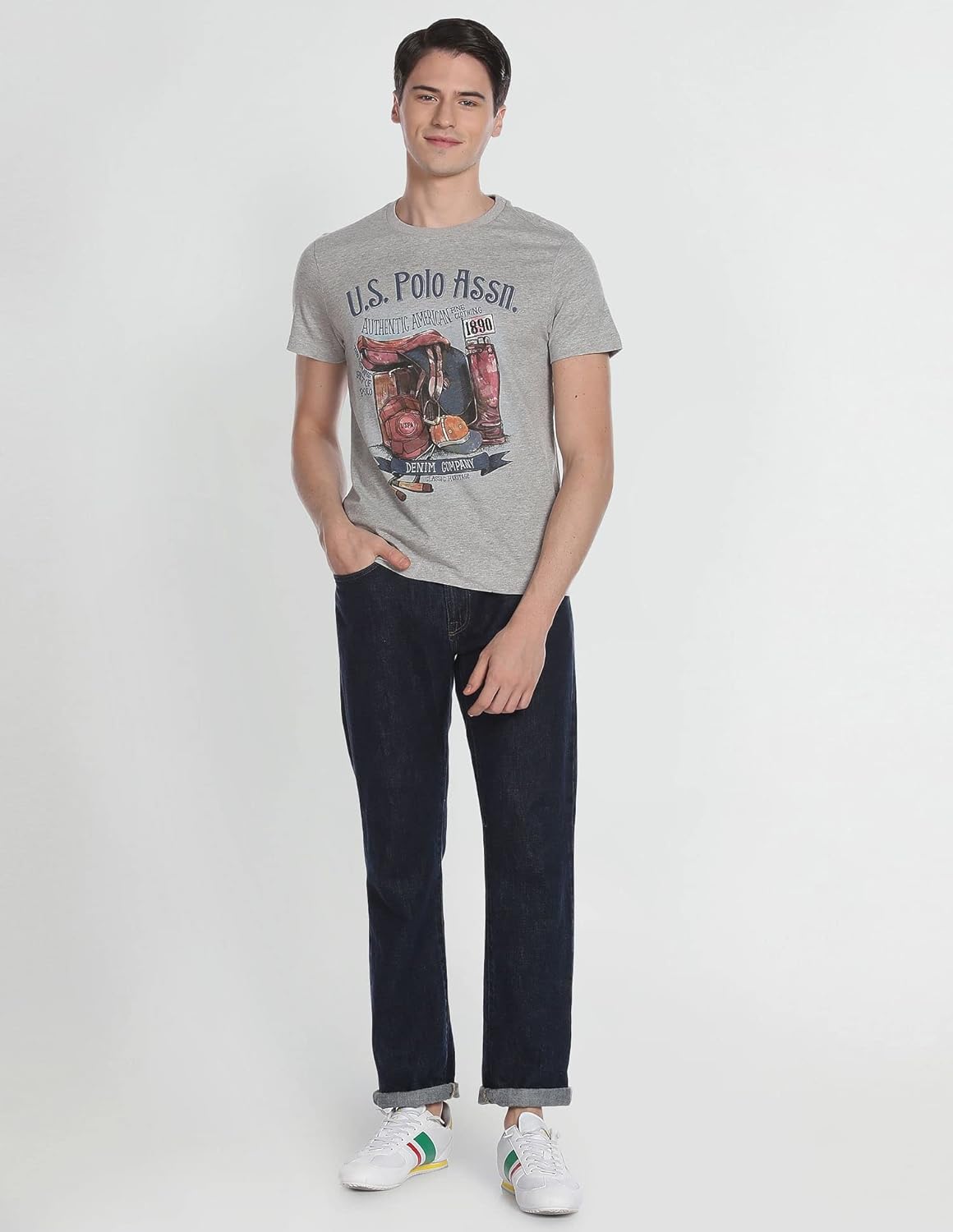 Give a new look to your casual wear assortments with this cool t-shirt from U.S Polo Assn. Cut from a soft fabric, they feature crew neck and short sleeves. Style it with torn jeans and slip-on shoes for a weekend ensemble.