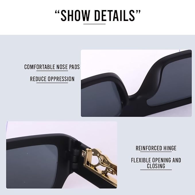 USJONES Mc Stan Luxury Jaguar Brand Trendy 90’s Vintage Square Rectangle Sunglasses – Unisex Fashion Eyewear